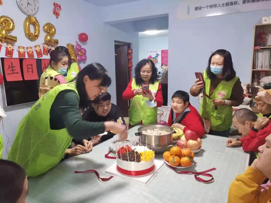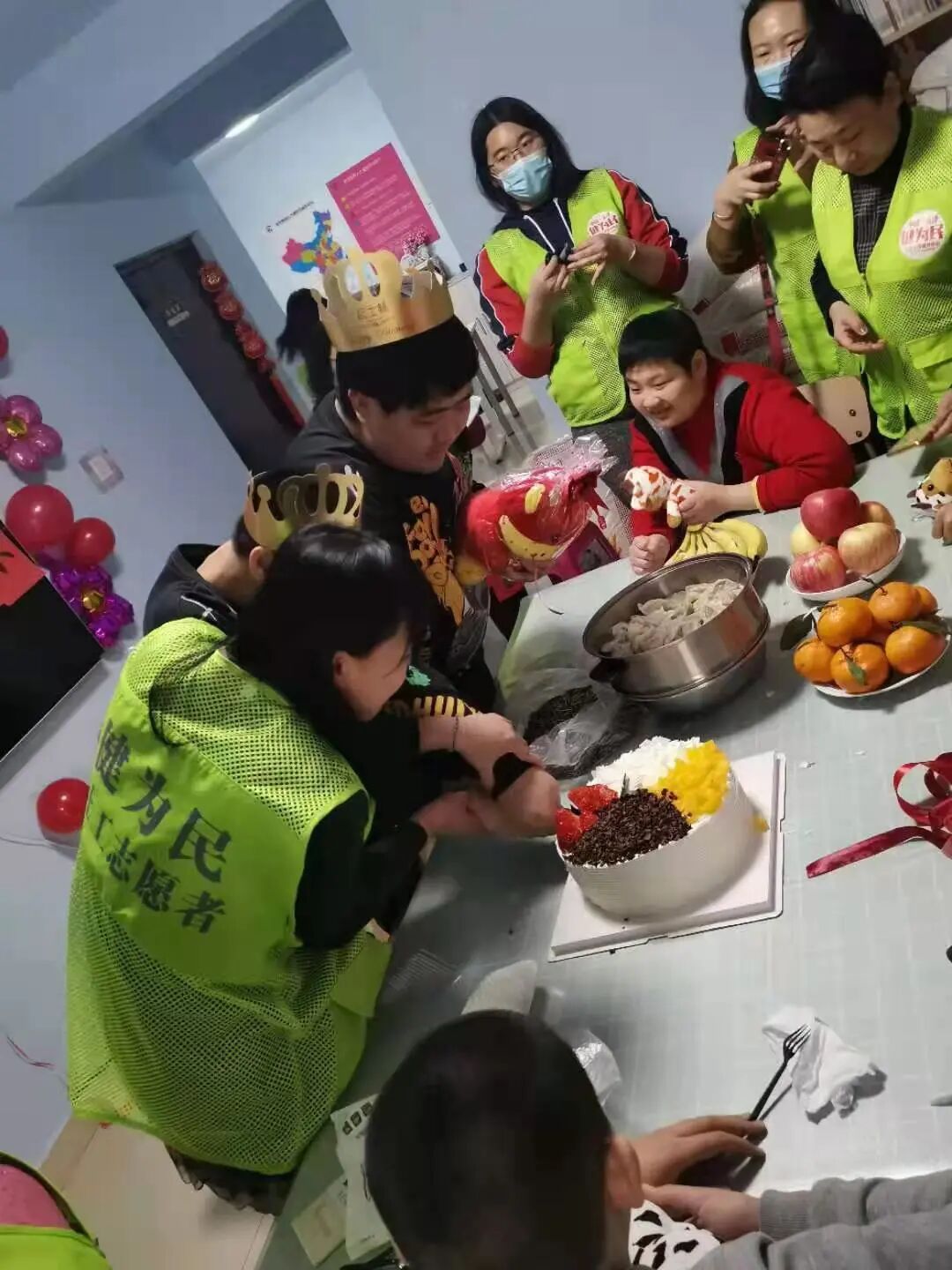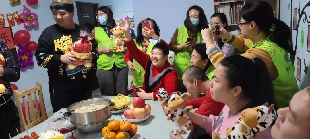12月21日冬至,天津市健为民社会工作服务中心志愿团队来到天津慧灵智障人士社区服务中心进行探访互动,为2名心智障碍者庆祝生日,一起过节。